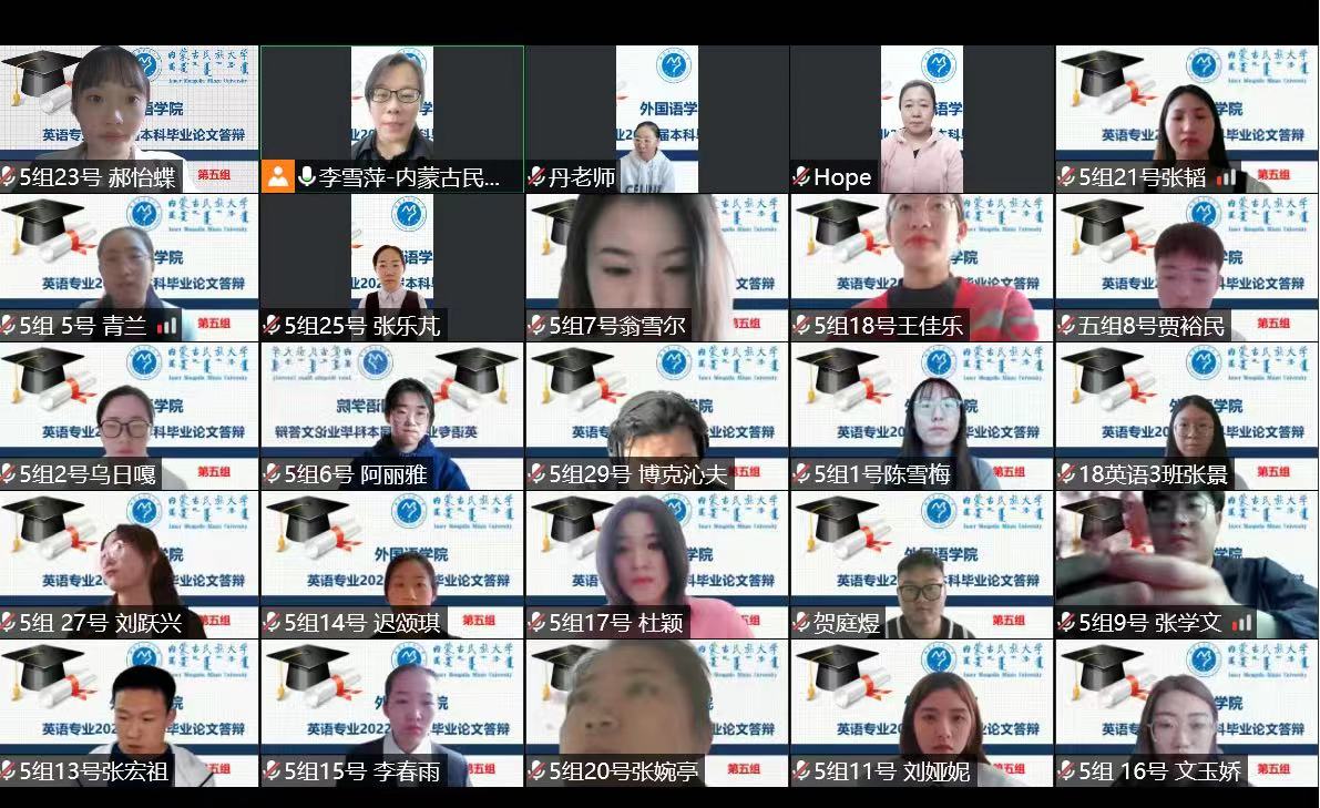 5月18日,外国语学院英语系进行了本科毕业论文线上答辩工作。本次论文答辩共设5个答辩组,每个小组由1名答辩主席,4名答辩委员和1名答辩秘书组成。英语系30位教师和2018级英语专业的157名学生参加此次答辩。