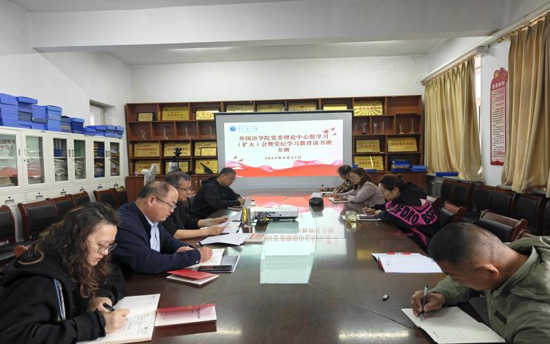 4月23日上午,外国语学院党委在博学楼503会议室召开理论学习中心组学习(扩大)会暨党纪学习教育工作读书班开班,理论学习中心组成员参加。中心组学习(扩大)会和读书班由党委书记李德清主持。