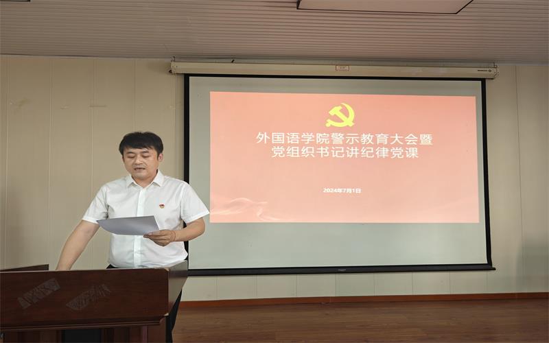 为持续推动党纪学习教育走深走实,7月1日下午,学院在霍林河校区博学楼204A开展警示教育暨党组织书记讲纪律党课。学院领导班子成员、全院党员参加会议。会议由党委副书记赵金文主持。