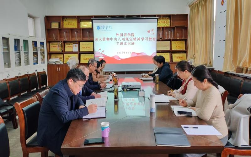 4月1日,外国语学院党委举办深入贯彻中央八项规定精神学习教育专题读书班。学院党委理论学习中心组成员,各党支部书记参加。学院党委书记李德清主持读书班。