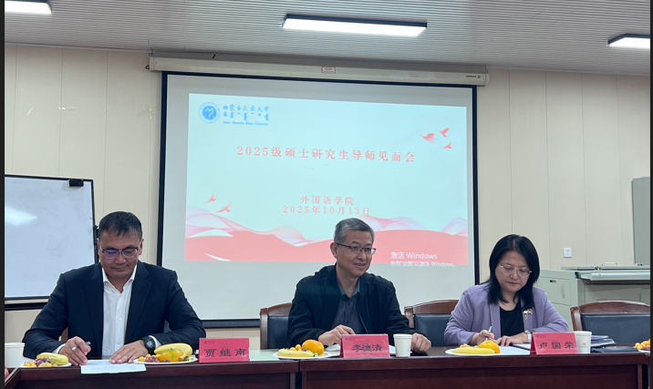 10月13日下午,外国语学院2025级硕士研究生导师见面会在博学楼204a教室成功举办。学院党总支书记李德清、院长卢国荣及全体硕士生导师出席,与2025级全体研究生新生面对面交流。会议由副院长贾继南主持。