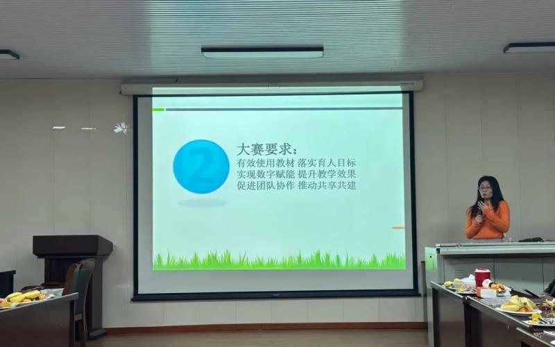 白烁作为外研社“教学之星”大赛全国复赛一等奖获奖团队成员进行了经验交流。白老师从赛题“数字赋能,创新育人”入手,强调备赛期间要有效使用教材,落实育人目标,同时要注重团队协作,从而推动共建共享,提升教学效果。