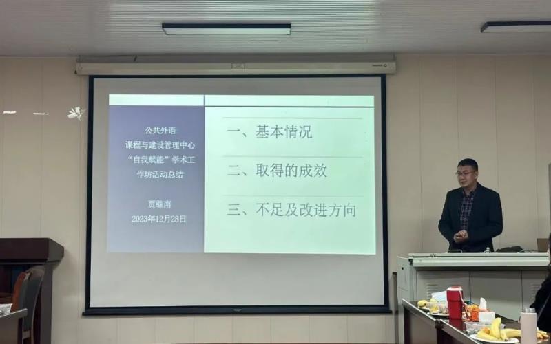贾继南对中心本学期开展的“自我赋能”学术工作坊活动进行了总结。他结合2019-2023年期间教师的科研成果与学校职称评审文件(讨论稿),鼓励中心教师凝练研究方向,积极实现自身提升与科研发展的联动,为学院的学科建设与专业发展贡献力量。