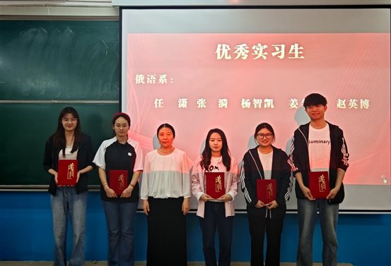 英语专业22级学生常哲和俄语专业21级学生张漪作为实习生代表发言,围绕实习期间工作内容、教学过程、挑战、收获与感悟等分享成长所得,还向为实习辛苦付出的领导、老师以及提供实践平台与经验的各学校、指导老师,表达诚挚谢意。同时,会议对实习期间表现优秀的学生予以表彰。