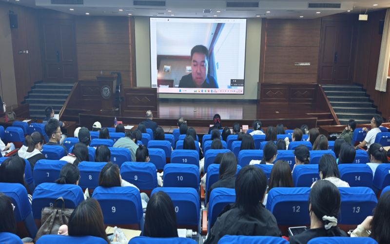 为全力促进2025届毕业生更充分、更高质量就业,5月14日下午,我院在图书馆小报告厅举办“青春启航,就业导航”校友就业宣讲会。邀请有幸邀请到奈曼旗第一中学党委委员、外国语学院2012届英语专业王浩茹校友;赤峰市喀喇沁旗应急管理局党委委员副局长、外国语学院2011届俄语专业苏玉锋校友。学院党委书记李德清、学院党委副书记赵金文、外国语学院2025届辅导员、班主任老师以及毕业生学生代表共计150余人参加本次讲座。宣讲会由党委副书记赵金文主持。